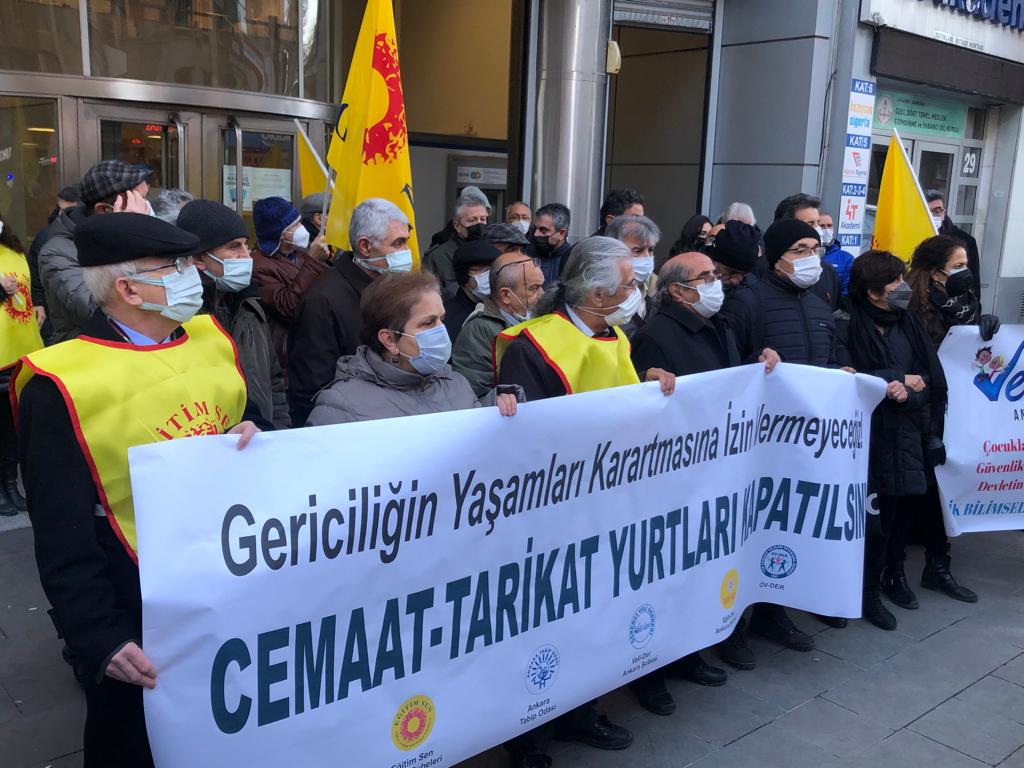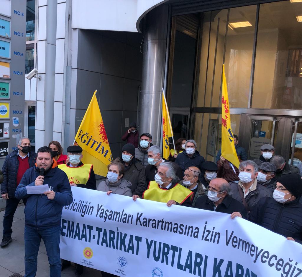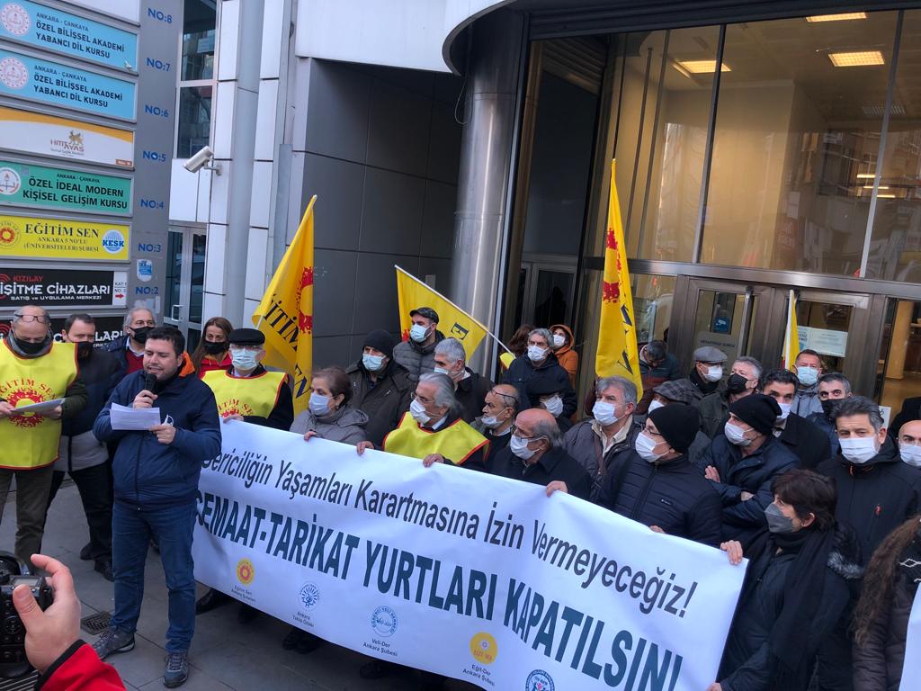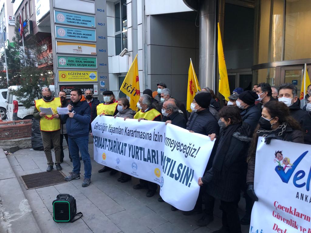 Eğitim Sen Ankara Şubeleri, Ankara Tabip Odası, VELİ-DER Ankara Şubesi, EĞİT-DER Ankara Şubeleri, ÖVDER Elazığ Fırat Üniversitesi Tıp Fakültesi öğrencisi Enes Kara’nın cemaat yurdunda gördüğü baskı sonrasında yaşamına son vermesinin ardından “Gericiliğin yaşamları karartmasına izin vermeyeceğiz! Cemaat tarikat yurtları kapatılsın!” talebiyle eylem yaptı.